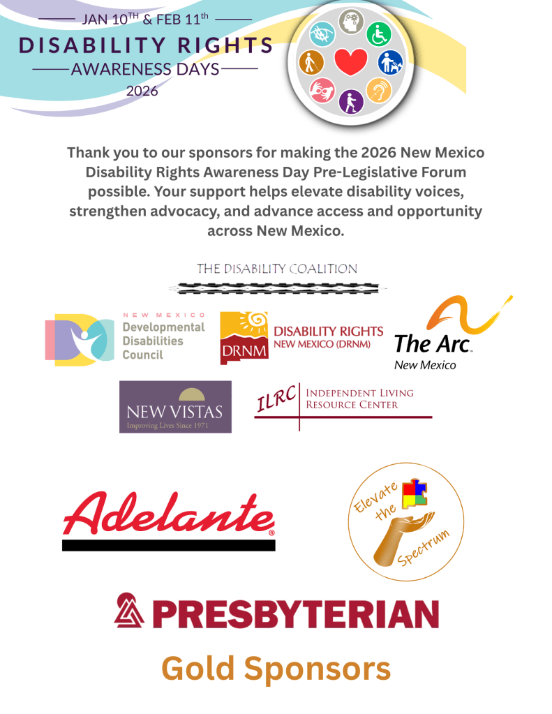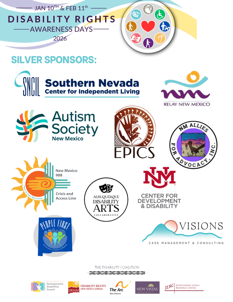 Disability Rights Awareness Days is a project of The Disability Coalition. Members include: The NM Developmental Disabilities Council, Disability Rights New Mexico, The ARC of New Mexico, New Vistas, and Independent Living Resource Center. To learn more about The Disability Coalition, please visit: https://drnm.org/public-policy/
